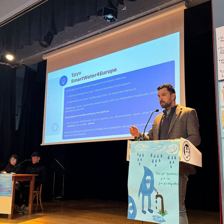 Ο Επικεφαλής του Europe Direct Δυτικής Μακεδονίας, Αντιπρόεδρος του Ομίλου Ενεργών Νέων Δυτικής Μακεδονίας (ΟΕΝΕΦ), Δρ. Κωνσταντίνος Στεργίου, κατά τη διάρκεια της εισήγησής του αναφέρθηκε στην πολιτική της Ευρωπαϊκής Ένωσης για τα ύδατα για την προστασία και την αποκατάσταση καθαρού νερού στην ΕΕ και για τη διασφάλιση της βιώσιμης χρήσης του μακροπρόθεσμα. Ειδικότερα, επεσήμανε τις πρωτοβουλίες και τις αναθεωρημένες οδηγίες της ΕΕ για τη διαχείριση των υδάτων και την προστασία των οικοσυστημάτων, παραθέτοντας απτά παραδείγματα. Τόνισε τον ρόλο της Ευρωπαϊκής Πράσινης Συμφωνίας με κεντρικό στόχο τη βιώσιμη διαχείριση του νερού. Αναφορά έγινε και στην καμπάνια της ΕΕ #WaterWiseEU για την ευαισθητοποίηση και ενημέρωση σχετικά με τις προκλήσεις που αντιμετωπίζει η Ευρώπη λόγω λειψυδρίας και λόγω της μη ορθολογικής χρήσης των υδάτινων πόρων. Τέλος, οι συμμετέχοντες/ουσες ενημερώθηκαν για το έργο SmartWater4Europe, για τα προγράμματα ευαισθητοποίησης της ΕΕ στα σχολεία, μέσω προγραμμάτων Erasmus+ και των Eco – School, καθώς και για τη διακρατική συνεργασία για τα υδάτινα αποθέματα και τα προγράμματα ανακύκλωσης και επαναχρησιμοποίησης νερού.