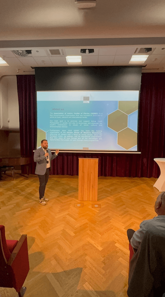 Τον Όμιλο Ενεργών Νέων Δυτικής Μακεδονίας (ΟΕΝΕΦ) εκπροσώπησε ο Πρόεδρος του ΟΕΝΕΦ, Δρ. Κωνσταντίνος Φιλιππίδης, Πρόεδρος της JT Platform για τις ίσες ευκαιρίες στην μετάβαση, Δημοτικός Σύμβουλος Φλώρινας και μέλος της Επιτροπής Παρακολούθησης του Σχεδίου Δίκαιης Αναπτυξιακής Μετάβασης και της Εδαφικής Επιτροπής Δυτικής Μακεδονίας. Κατά τη διάρκεια της παρέμβασής του, ο Dr. Konstantinos Filippidis έκανε μία σύντομη αναφορά στο έργο και ρόλο του Ομίλου Ενεργών Νέων Δυτικής Μακεδονίας – Europe Direct Δυτικής Μακεδονίας αλλά και στις πρωτοβουλίες του Ομίλου για την ενδυνάμωση των νέων και της συμμετοχής τους στη διαδικασία της Δίκαιης Μετάβασης. Επεσήμανε τις δράσεις και τα καινοτόμα προγράμματα που υλοποιούνται από τον ΟΕΝΕΦ και στόχο έχουν την ανάπτυξη των δεξιοτήτων των νέων αλλά και τη γενικότερη ενεργοποίηση και ενδυνάμωση των δυνατοτήτων της νέας γενιάς για την τόνωση της Ευρωπαϊκής Ενεργειακής Μετάβασης στην Περιφέρεια Δυτικής Μακεδονίας, αλλά και σε γενικότερο πλαίσιο για την εφαρμογή Ευρωπαϊκών πολιτικών και δράσεων με σκοπό την οικοδόμηση της Ευρώπης. Η αντιμετώπιση της φυγής των νέων και ιδιαίτερα νέων επιστημόνων με υψηλή κατάρτιση είναι η σοβαρότερη παράμετρος που θέτει σε κίνδυνο κάθε αναπτυξιακή πρωτοβουλία και απειλεί το μέλλον των περιοχών.