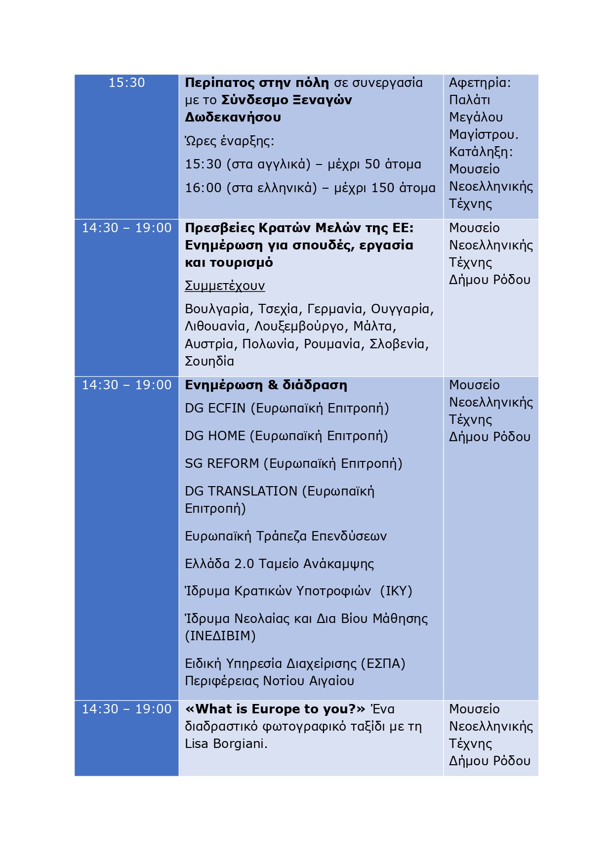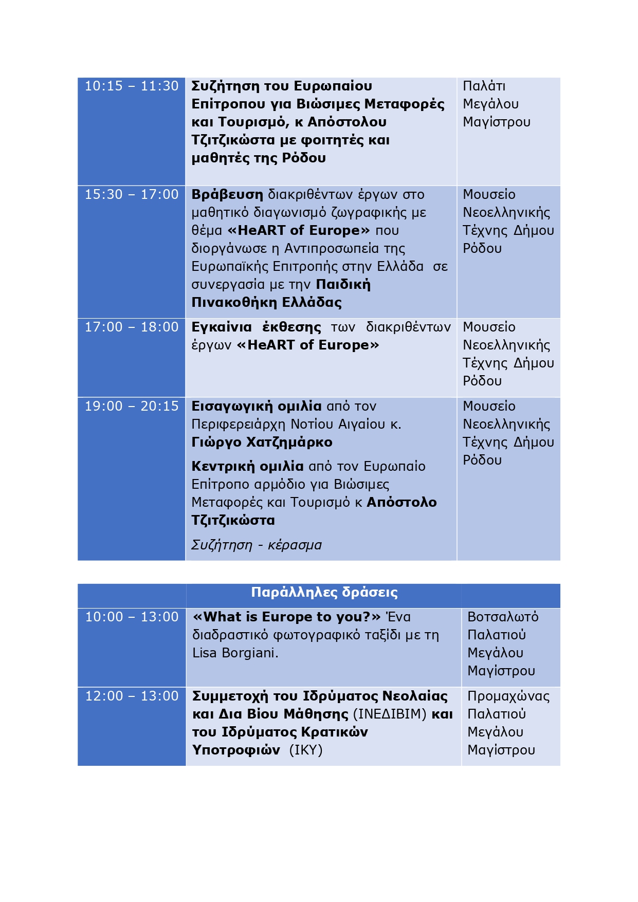 Δείτε το αναλυτικό πρόγραμμα της Ημέρας της Ευρώπης παρακάτω: