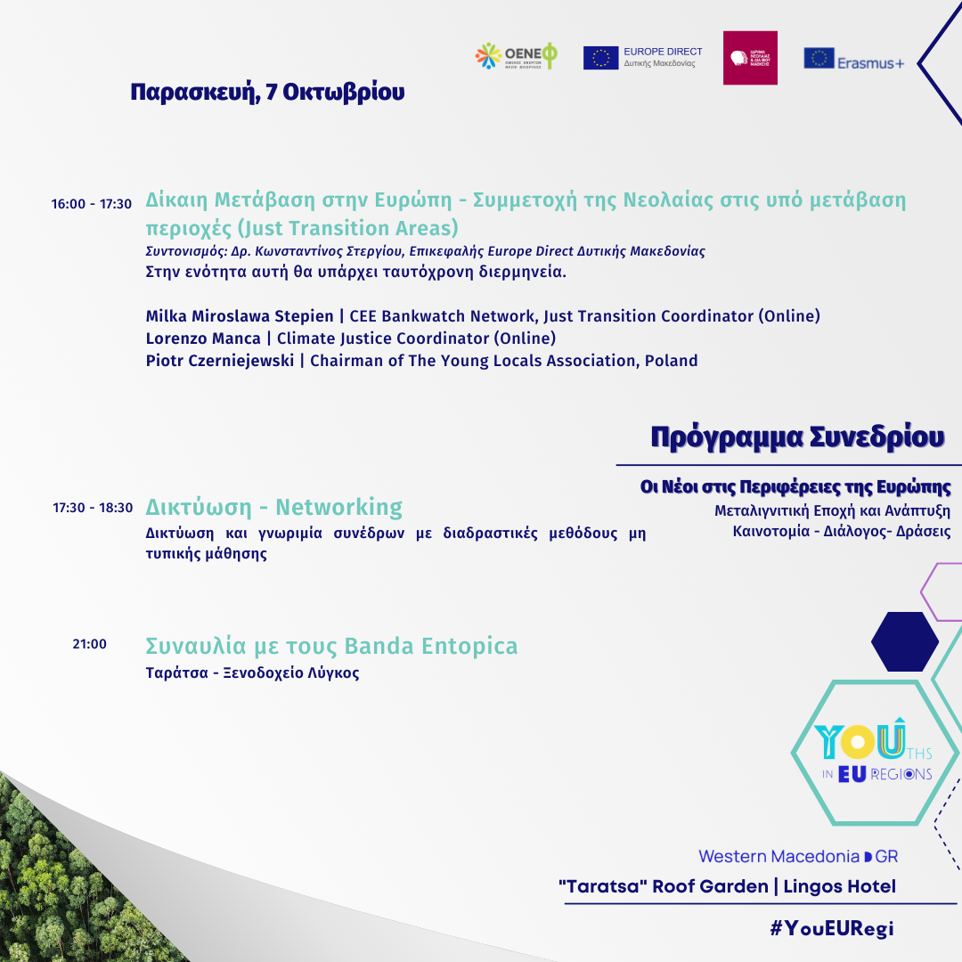 Η συμμετοχή της Δυτικής Μακεδονίας στο μεγάλο, δύσκολο και απαιτητικό εγχείρημα της μετάβασης σε μία πράσινη Περιφέρεια, δεν πρέπει να αφήσει αδιάφορους τις νέες και τους νέους, τα μέλη και τους